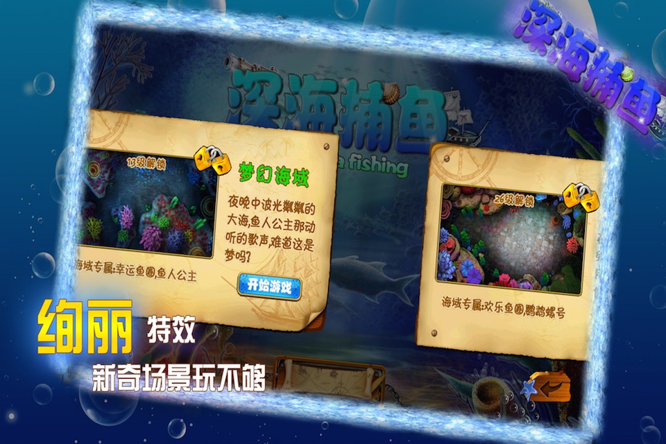 深海捕鱼(街机版)是一款由成都玉米树科技精心打造的一款捕鱼游戏,具有真实而美丽的场景,卡哇伊的鱼群,完美移植街机游戏,新奇有趣的射击体验,让你有不一样的游戏感觉,集关卡解锁探险,宠物收集升星,趣味道具使用,市场出售购买,特殊鱼群渔圈为一体,随时随地畅享在街机厅玩捕鱼的乐趣,快快行动吧。还有更多好礼等着你,更多帮助请查阅游戏帮助。