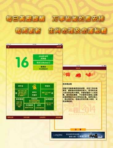 综合各位大师精华,精准预测分析事业、爱情、财运及健康走势,是2015年你必须随身携带趋吉避凶的红宝书!!!内容联网每周均有更新,不断提供最新,最有价值的生肖命理信息及幸运秘籍。
