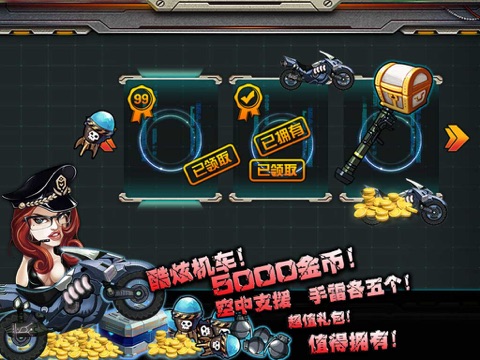 《单机合金弹头》集成经典合金弹头游戏的画面与风格,创新玩法,拥有丰富的关卡与模式,多种职业任你选择。酷炫机车、空中支援,锻造装备,战力爆棚,各种玩法瞬间嗨爆全场!