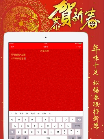 2015羊年到,值此佳节,奉上这款可以写对联,看对联,以对联会友的春节版应用。