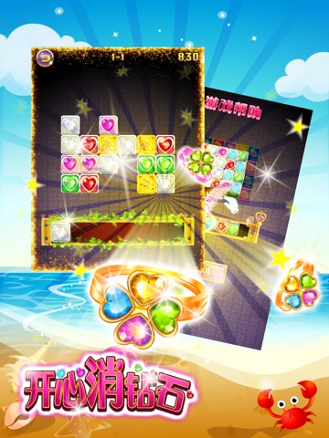 游戏画面晶莹剔透,玩法新颖,游戏规则简单易上手,收集相同颜色的钻石进行匹配消除,结合了对对碰与消除玩法的特色,我们的目标是消除所有的钻石,一路走向通关!