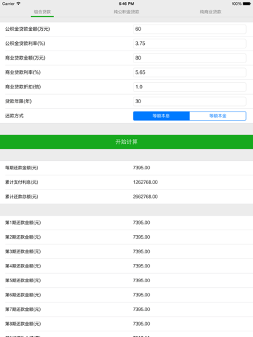 无论公积金贷款,商业贷款,还是组合贷款,不管是等额本息还是等额本金,一个工具全搞定。