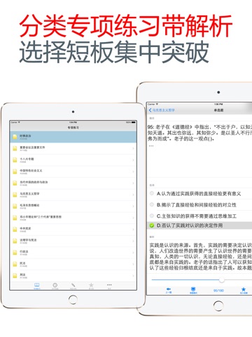 4、随机测试:随机生成100道试题模拟测试,检验复习成果,可自动将错题加入到错题库。