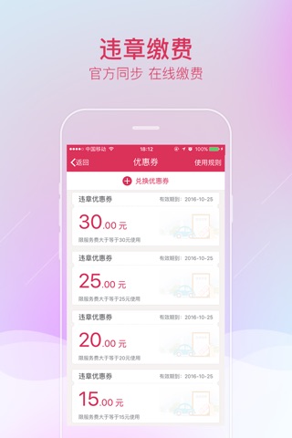 违章缴费优惠券,免费送不停~更多洗车、养护、车险优惠,多到想不到哦~