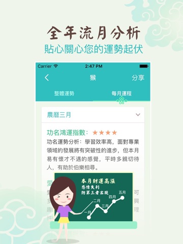 3、流月分析:大师指导每月运程,助您猴年顺风顺水、事事顺心!