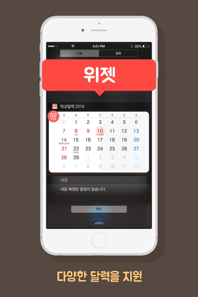 - 완료를 누르면 2016탁상달력 위젯이 알림센터에 설정됩니다.
