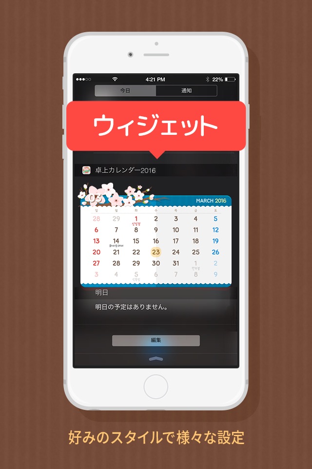 ** 「卓上カレンダー2016」ウィジェットの設定方法 (iOS8~) **