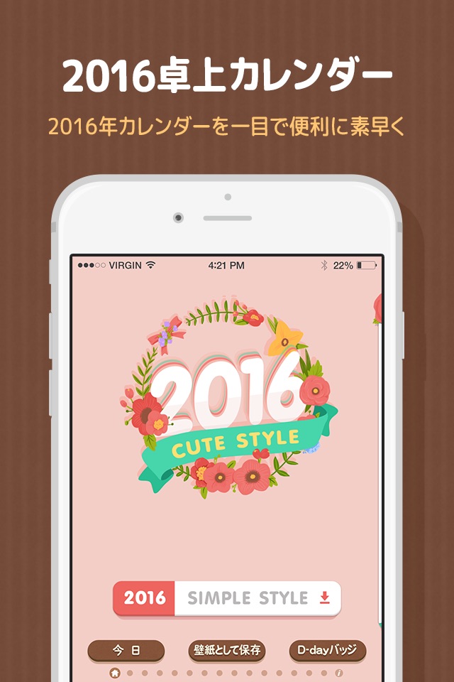 - 「卓上カレンダー2016」ウィジェットの「+」アイコンをタップします