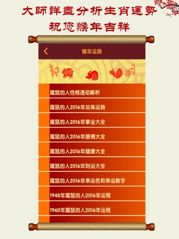 2016猴年最全運程及流年破解大全,十二生肖運勢攻略之王,綜合各位大師精華,精准預測分析事業、愛情、財運及健康走勢,命中劫數提醒規避。是2016年你必須隨身攜帶趨吉避凶的紅寶書!!!內容聯網每週都有更新,不斷提供最新,最有價值的生肖命理資訊及幸運秘笈。