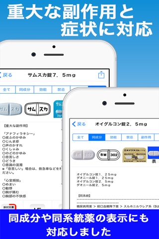 医薬品画像搭載。独自の画像処理により、一覧表示でも識別コードを確認できる美しさを実現しています。