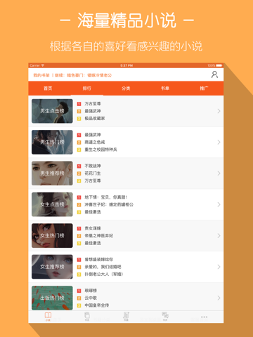 根据男女不同喜好分类,涵盖类型广,言情、玄幻、武侠、灵异、穿越、豪门、校园、历史等各类小说应有尽有。还有出版小说、名人传记、生活时尚、漫画杂志、青春言情等出版类的作品。最新最热门的小说免费追,让你爱不释手。