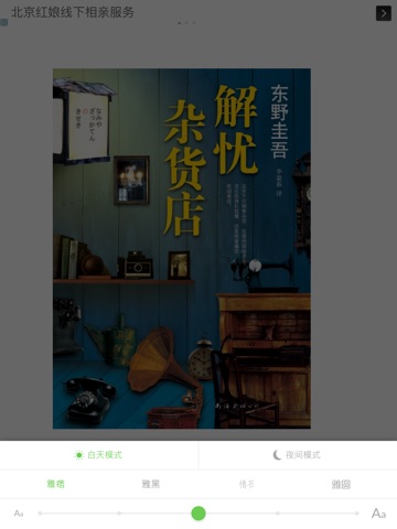 - 支持白天、夜晚两种阅读模式