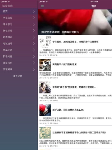 我们图文并茂,深入浅出、通俗易懂,集知识性、指导性、趣味性、实用性于一体,分析学车动态,重点讲解理论学习、倒桩移库、 路考路训、考试技巧,以及新手驾驶技巧、驾驶要领、以及日常安全驾驶常识等内容,是汽车驾驶学员新手不可多得的参谋和助手。