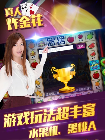 2017年,投入巨资重金打造的超人气炸金花游戏。融合了水果机、麻将、黑桃扑克杀手等多个在电玩城中最火爆的游戏,万人同玩炸金花,迅速崛起,非常刺激。
