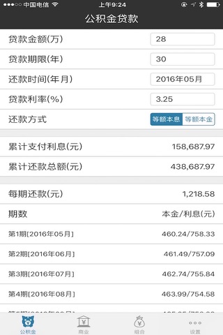 房贷计算器是房贷计算的专业软件。计算商业贷款和公积金贷款选择等额本金和等额本息的还款方式时,每月的月供、利息总额和还款总额。