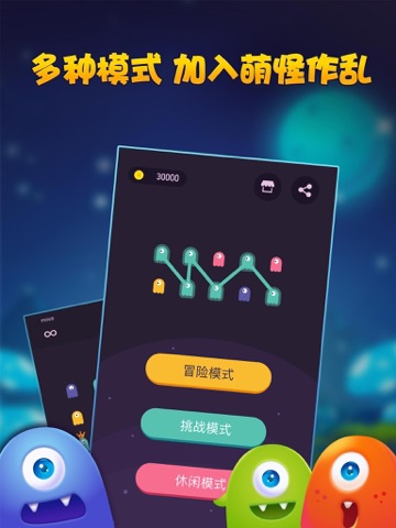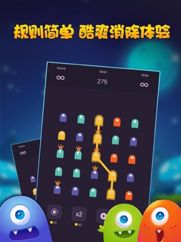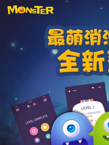 In the specified number of steps or within a specified period of time, you should slide your finger to line the same color Monsters and win the score points,and then you got the enough score,you will pass the level.