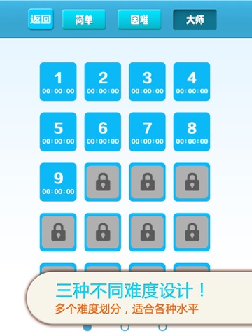 1.选择一种游戏模式,只能从简单开始并且逐级解开关卡哦!