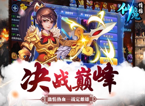 《仙魔情缘》是一款多人同时在线,突破传统玩法,实时强战PK,爆裂高清画质的仙侠ARPG手游巨作。修仙之路处处是战场,蛮荒之地、怪物攻城、黄泉洞窟、夺宝奇兵、蜀山之巅、仙盟攻城、跨服巅峰对决等众多特色玩法,让你在修仙的世界里,享受非凡的热血战斗,更有霸气光武、酷炫时装、多样个性坐骑来让你与太阳肩并肩!下载《仙魔情缘》,热血激情的修仙之路就在你脚下,向前就可成就一段修仙传奇!