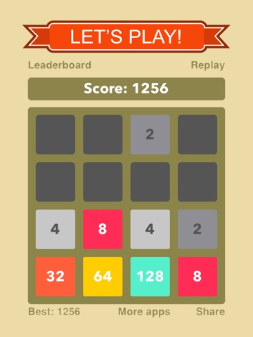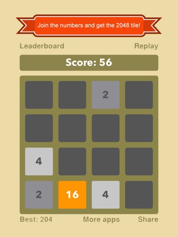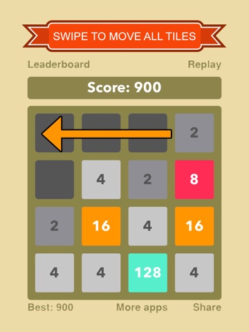 Swipe to move all tiles. When two tiles with the same number touch, they merge into one.