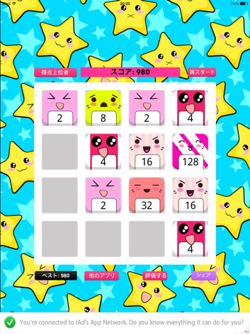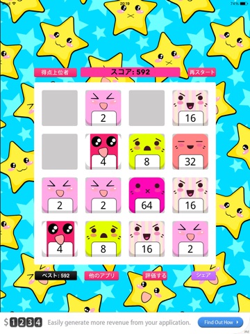 2048の、キュートなアニメ風タイルを使ったバージョンに挑戦しよう。