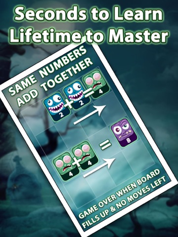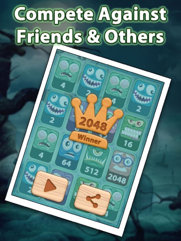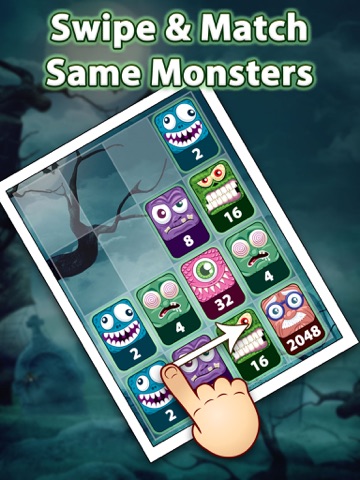 Joining 2s monsters becomes 4s monsters. Joining 4s monsters becomes 8s monsters, and so forth. Join in the Power of Twos to get to the 2048 monsters to win. Its harder than you think.