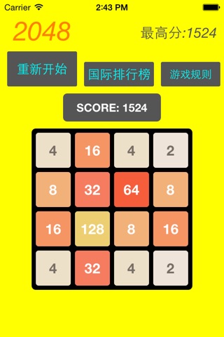 在4X4的棋盘上,每次会增加一个数字,你可以选择四个方向,然后数字会按方向移动,遇到相同的数字就会合并,最终看你获得了多少总分。