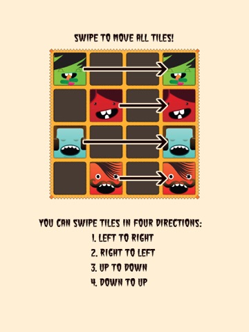 You can swipe tiles in four directions:
