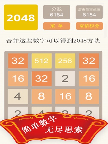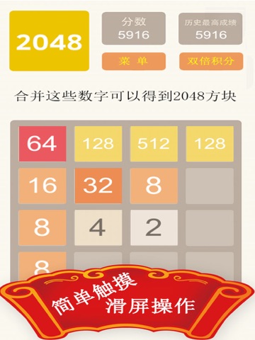 这款游戏的玩法很简单,每次可以选择上下左右滑动,每滑动一次,所有的数字方块都会往滑动的方向靠拢,系统也会在空白的地方乱数出现一个数字方块,相同数字的方块在靠拢、相撞时会相加。不断的叠加最终拼凑出2048这个数字就算成功。