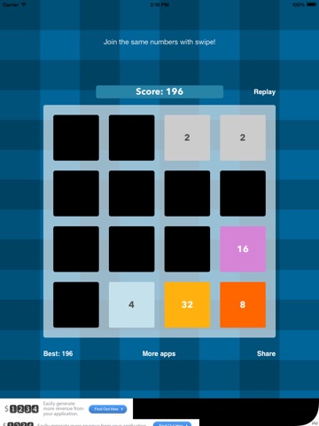 Swipe to move all tiles. When two tiles with the same number touch, they merge into one.