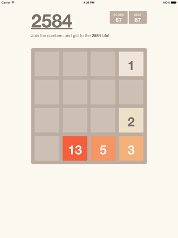 2048 Fibonacci series: 1, 1, 2, 3, 5, 8, 13, 21 ..... 2584. (you can continue up to 10946 tile).