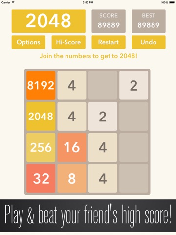 Get to the 2048 tile, and reach a high score!