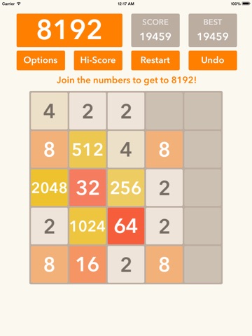 Swipe to move all tiles. When two tiles with the same number touch, they merge into one. Goal of the game is join the tiles to get the 8192 tile and reach a high score.
