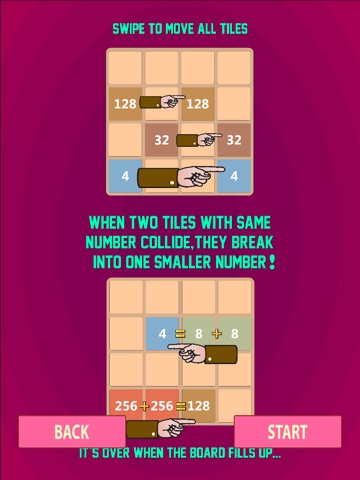 Swipe to move all the tiles. When two tiles with same number sit together they will be merged into one!