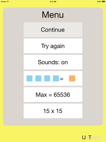 - 15 x 15: every step adds 5 cells - Reach 32768 or 65536!