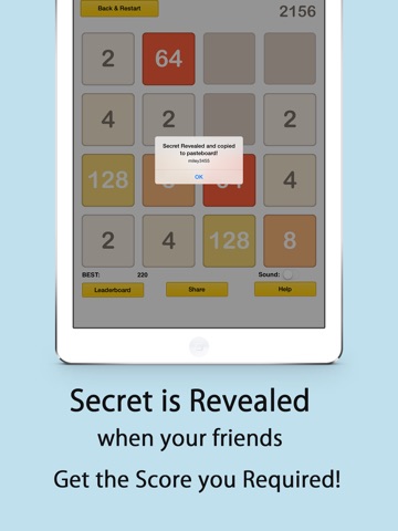 Send secret to your friends which they required to beat the 2048 Game to reveal it!