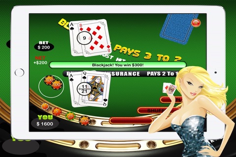 BLACK JACK! Sit down at the hottest blackjack table Vegas has to offer! This classic style Back jack table offers huge payouts and endless game play. Come join the party for FREE!!