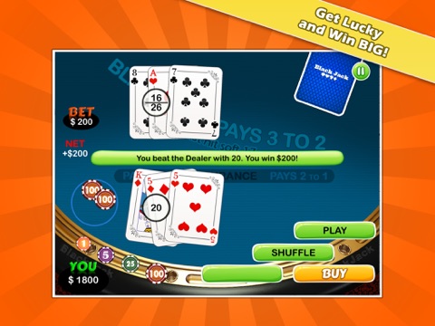 Try your luck at one of Las Vegas’ most popular casino games. Other free blackjack apps make you wait for other players online, with 21 Blackjack, you can play as fast and as often as you want. Try it now!