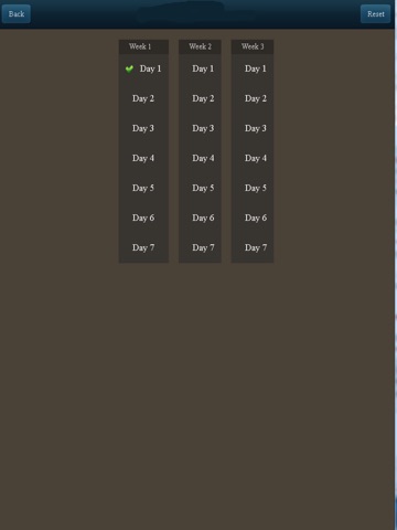 Log your next 21 day exercise program with this simple app. Simple drag and drop the colored icons from the Allocated section to the appropriate meal. Its visually easy to tell how many icons are left for the day. You can even make a note of what you ate for that meal.