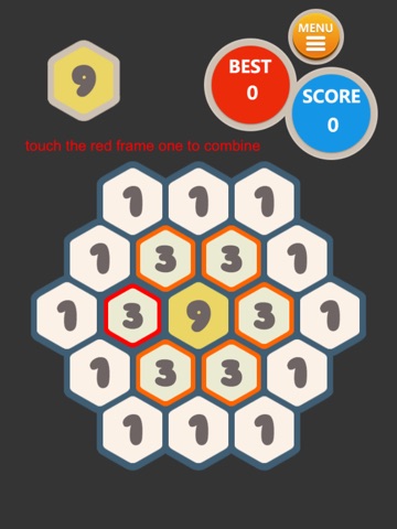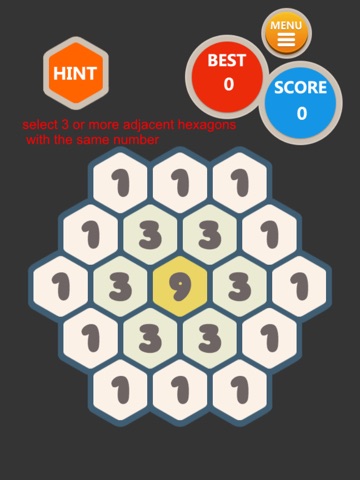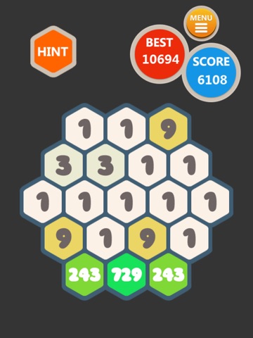 Select 3 or more hexagons with the same number and combine to a high grade number.