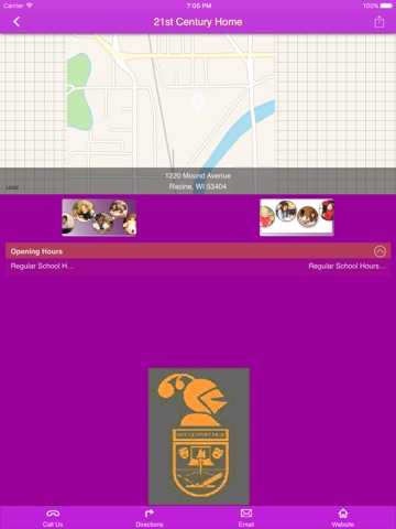 This app is designed to enable parents, teachers and students to communicate better. It will provide directions to events, notices to parents, learning enrichment games and access to student handbooks. It provides contact information. It will enable users to send pictures of events to share with 21st Century parents and students. The APP will start the enrollment process.