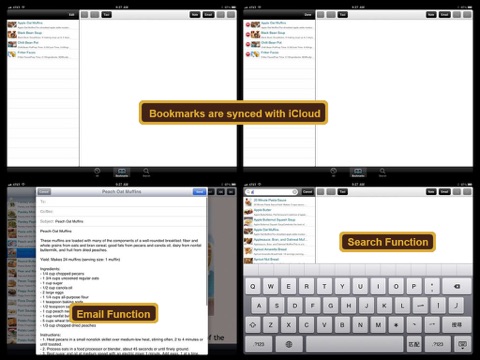 * Ability to BOOKMARK selected recipes for easier reference