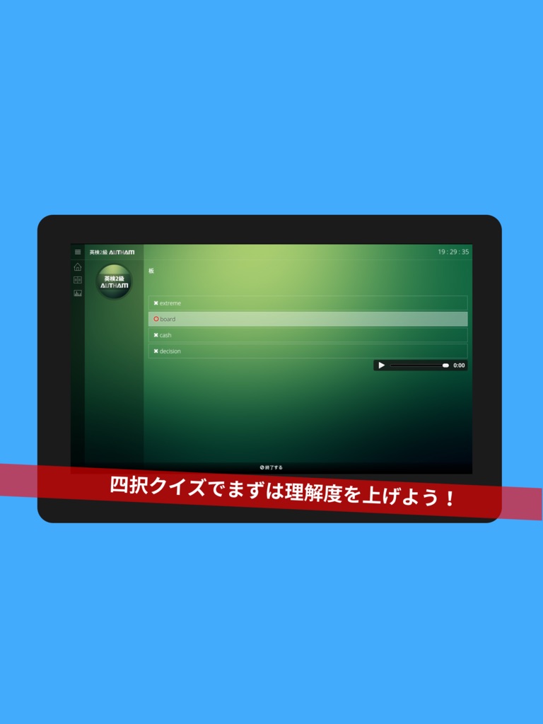 空いているわずかな時間をスマホで学習し、ぜひ英検2級合格の手助けをしたいと思い作成したアプリです。