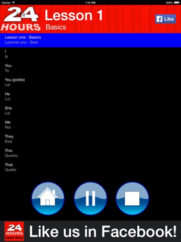 Too busy to enrol on a proper Italian language course or perhaps it is too expensive? Tell you what, youre not the only one and we now have a solution. This app is designed to work with your active lifestyle at your own pace! With the audio feature of this app, you can always learn while on the go. Whether you are driving, on the bus or train, jogging in the park or perhaps relaxing in bed, just plug in your earphones and start learning! This app gives you the easiest and most hassle free way to learn the Italian language!
