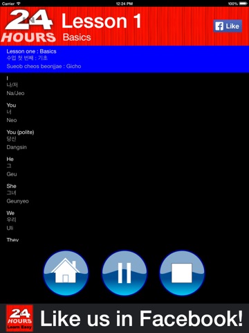 Too busy to enrol on a proper Korean language course or perhaps it is too expensive? Tell you what, youre not the only one and we now have a solution. This app is designed to work with your active lifestyle at your own pace! With the audio feature of this app, you can always learn while on the go. Whether you are driving, on the bus or train, jogging in the park or perhaps relaxing in bed, just plug in your earphones and start learning! This app gives you the easiest and most hassle free way to learn the Korean language!