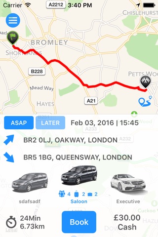 - Autocomplete your pick-up and drop-off address;