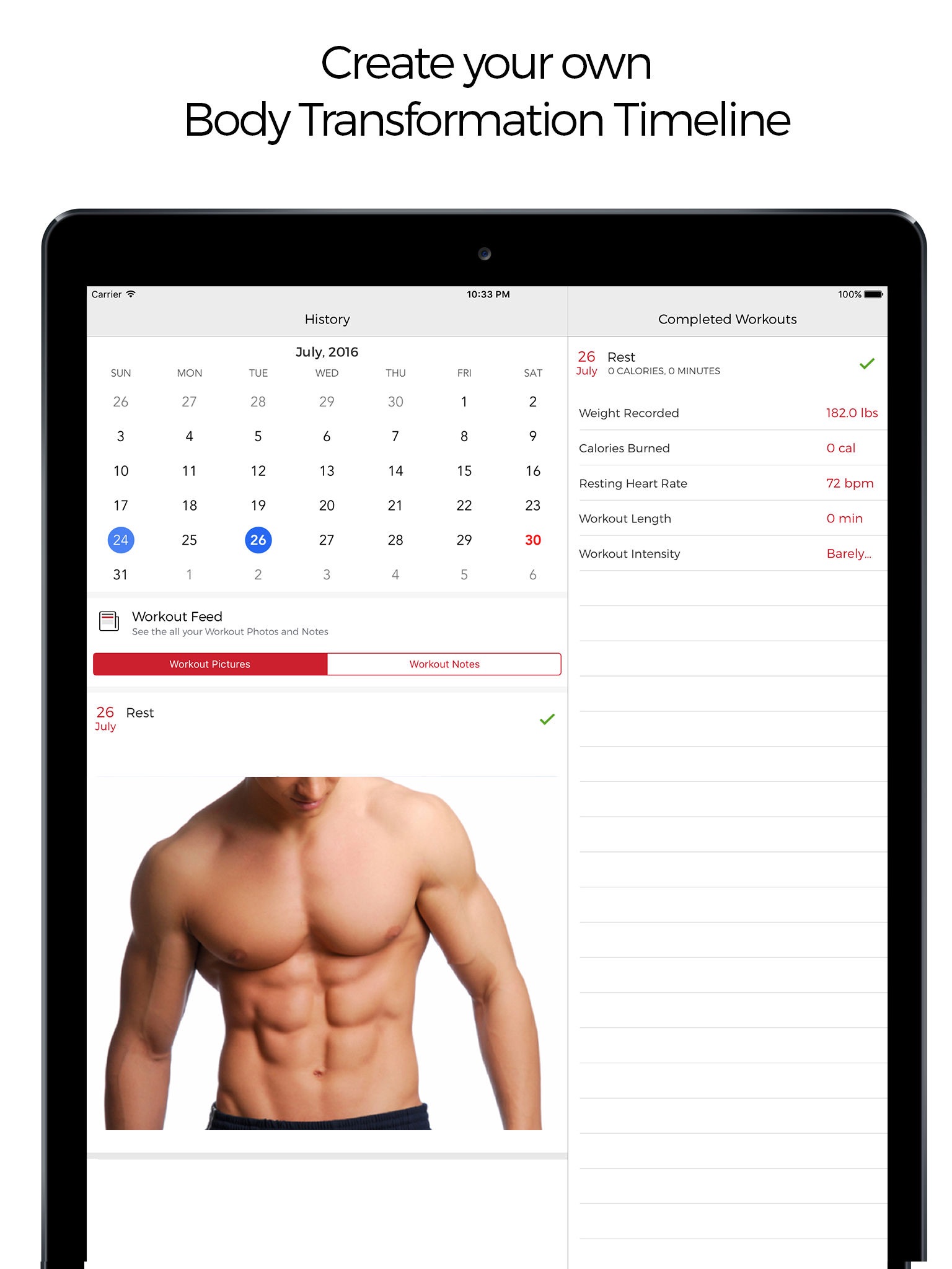 ▸ Photos: Periodically add your Workout Photos on each Rest day to measure the transformation!