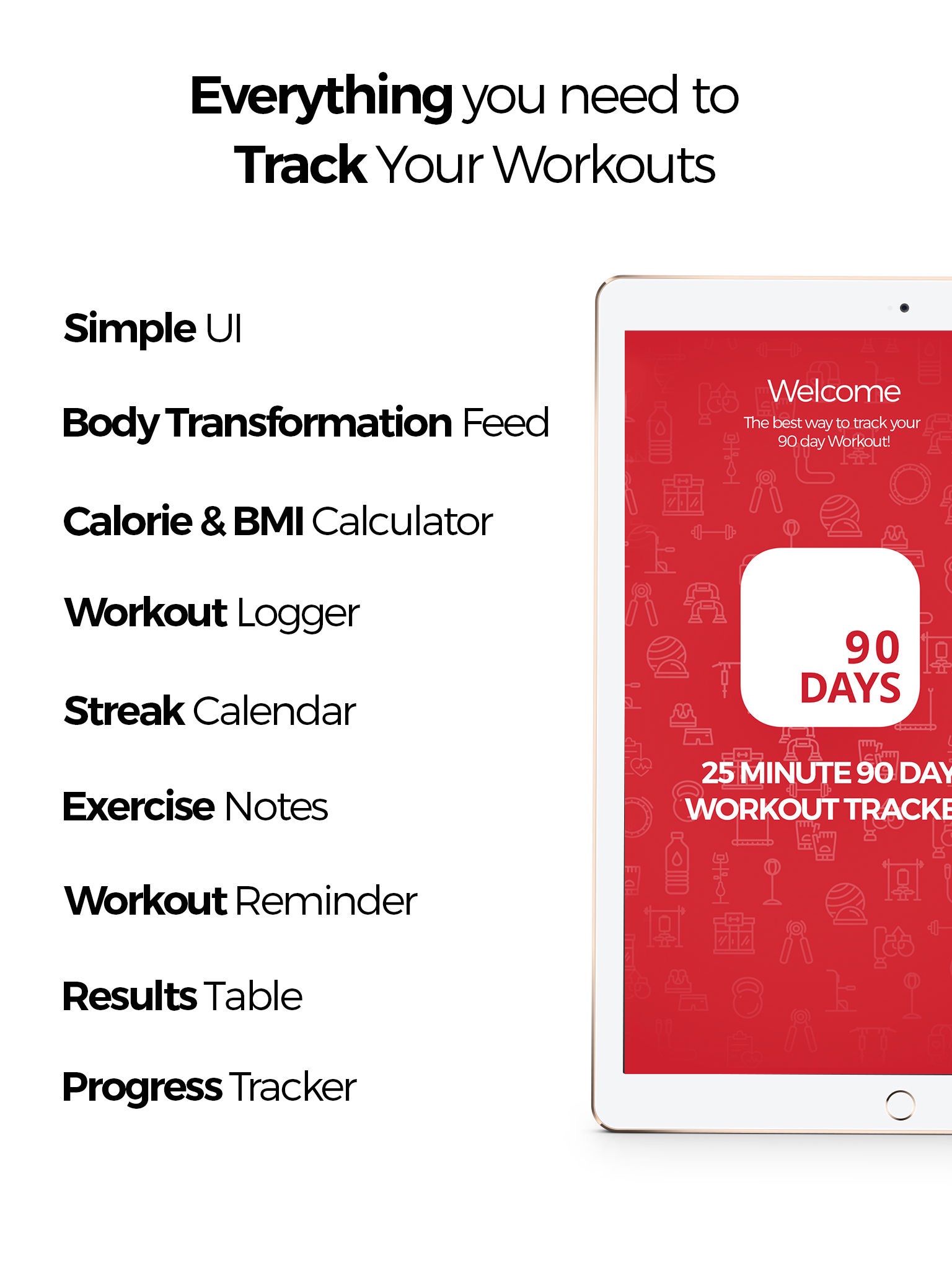 ▸ Progress Tracker: Log BMI, Weight, Heart Rate, Intensity, Workout Date & Time and many other variables