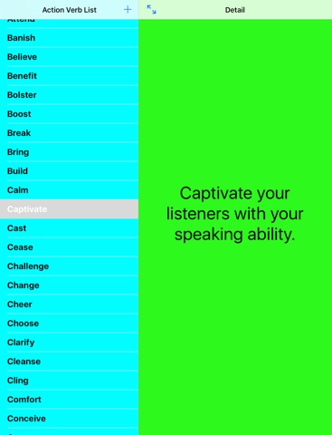 Words have power. Boost your ability to succeed in every area of your life. Grasp this opportunity right now - get these 277 Action Verbs and add your own also. This app is very easy to use. Keep these power words at your fingertips as you integrate them into your writing and speaking.