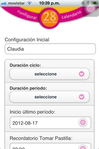 Asistente para control de ciclo menstrual femenino.