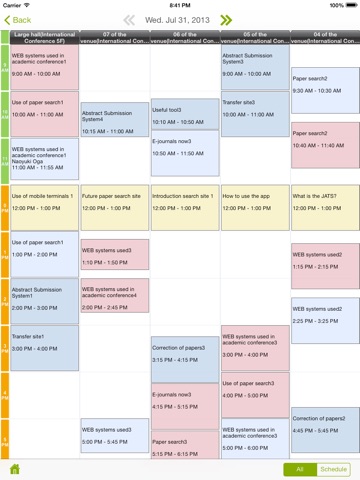 You can add presentations to My Schedule by tapping [Schedule] button, by which you can access the sessions/presentations directly from My Schedule.